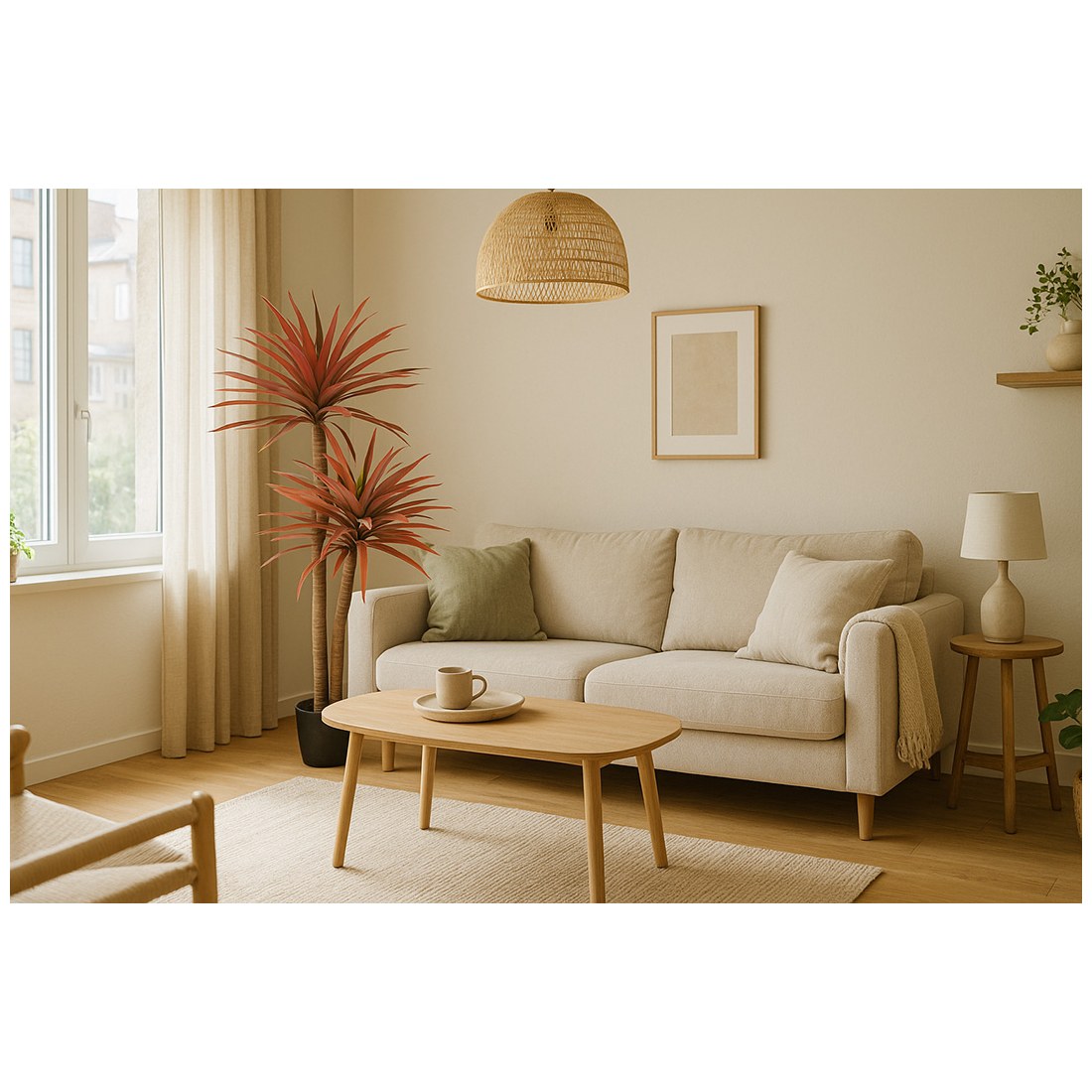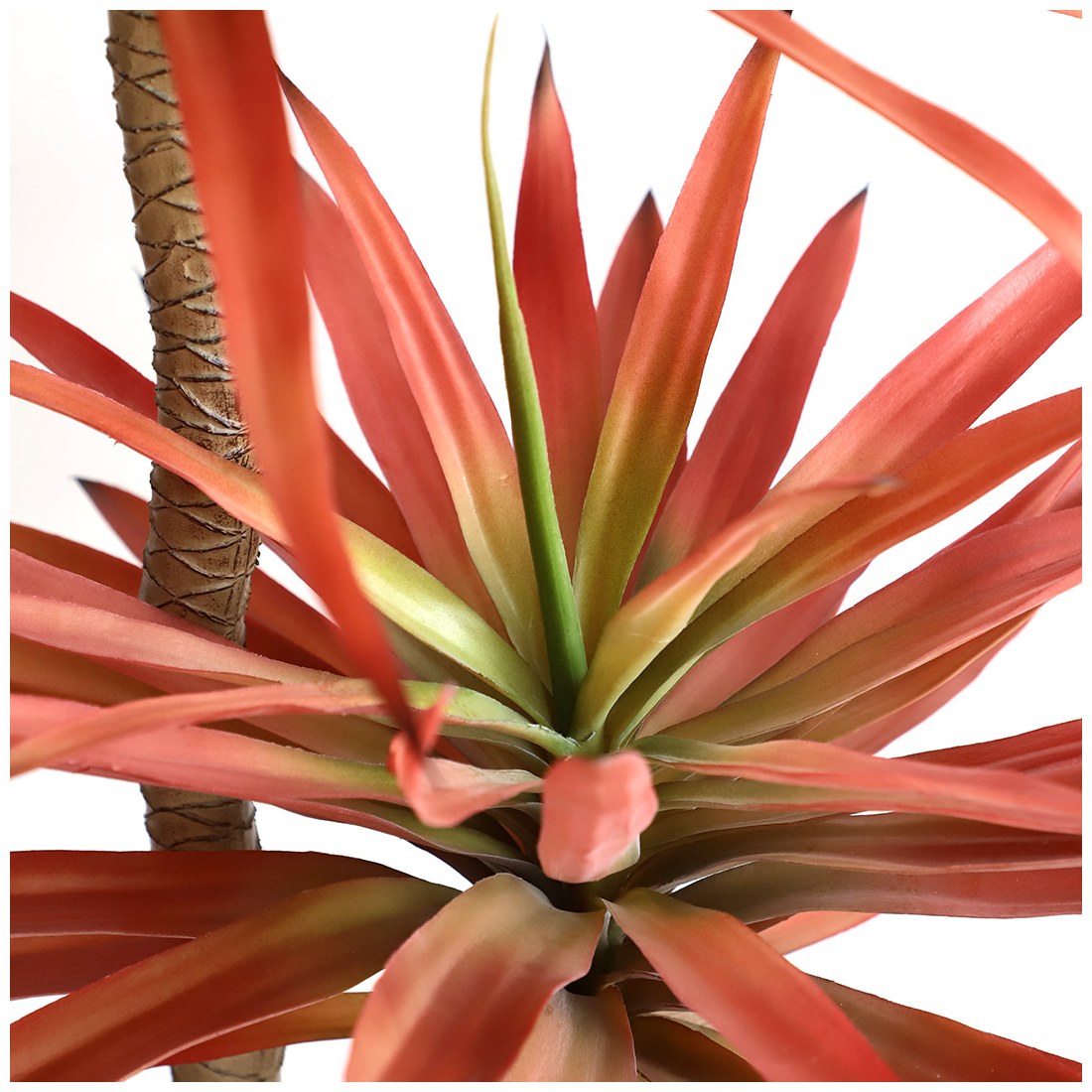 Το τεχνητό δέντρο Σιζάλ περιλαμβάνει έναν κομψό κορμό, με υφή που μιμείται εκείνη του φυσικού ξύλου και τα φύλλα του είναι κατασκευασμένα σε ζωηρές πράσινες και κόκκινες αποχρώσεις, σχηματίζοντας ένα πυκνό και υγιές φύλλωμα.