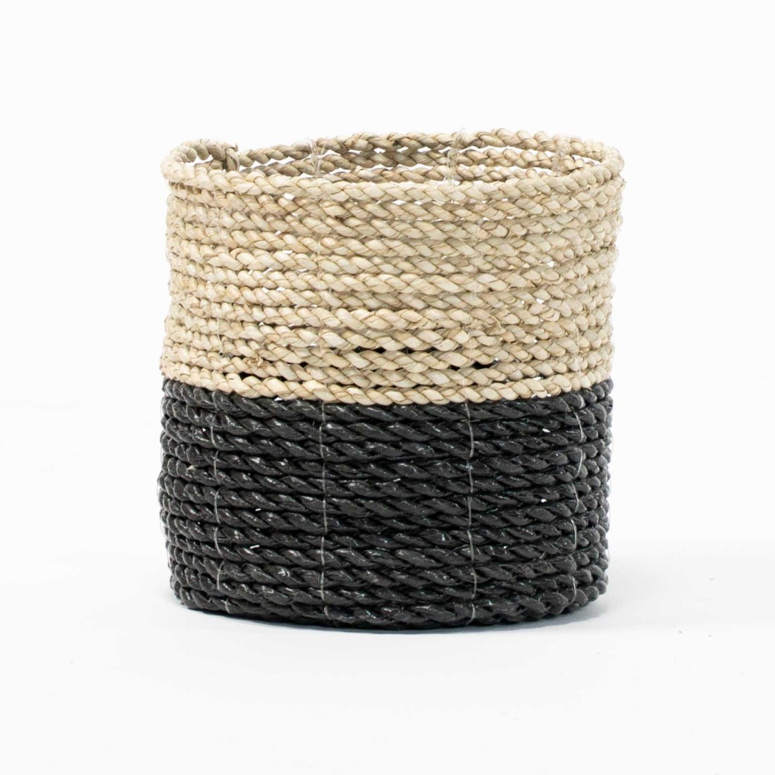 Supergreens Καλάθι πλεκτό "Grass" Φυσικό & Μαύρο 16x16x15 εκ.