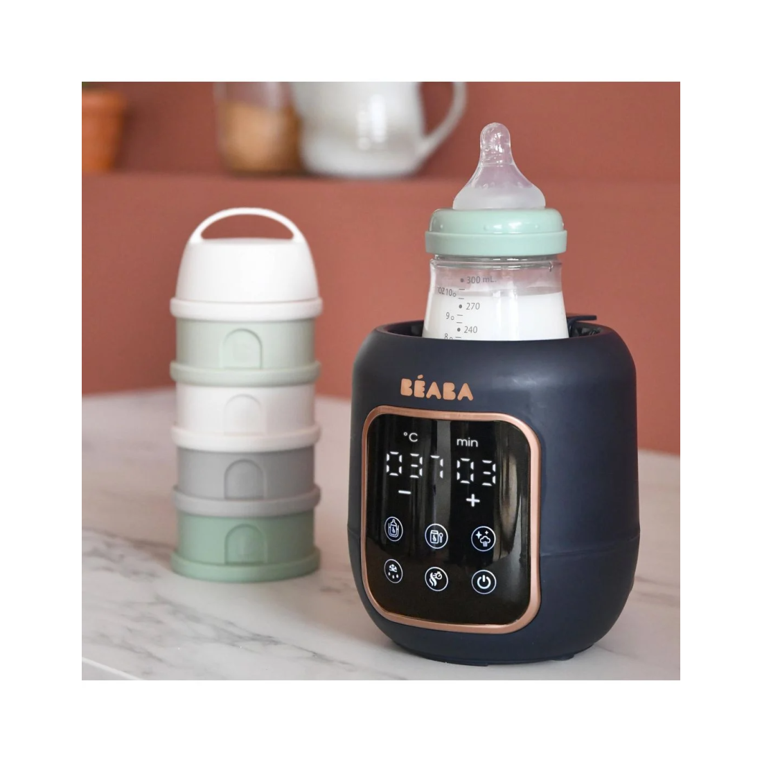 • Ένας πολυλειτουργικός θερμαντήρας μπιμπερό που επιτρέπει την εύκολη και απλή θέρμανση μπιμπερό και μικρών βάζων.