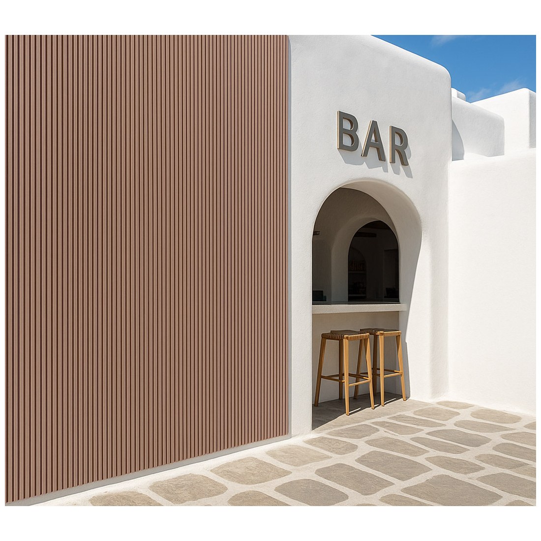 Κατασκευασμένα από ξύλο, ανακυκλωμένη ρητίνη, HDPE και UV σταθεροποιητές, τα πάνελ είναι εξαιρετικά ανθεκτικά, αδιάβροχα και εύκολα στην εγκατάσταση.